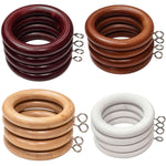 45/35mm Wooden Curtain Pole Rings with Hooks Pack of 6 Traditional Solid Wood Curtain Accessories