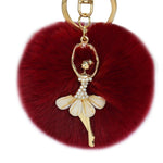 Dancing Angel Key chain Cute Lucky Charm Pompom Fur Ball with Rhine Stone Gifts By HomeElabador
