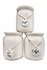 Ceramic Tea Coffee Sugar Canister Set Kitchen Storage Jars with Hanging Labels