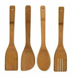 4 Pcs BAMBOO SPOONS Wooden Spatula Kitchen Cooking Utensils Tools Turner Set New