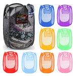EASY OPEN HAMPER LIGHTWEIGHT MESH FABRIC LAUNDERY TOY BASKET STORAGE SIDE POCKET